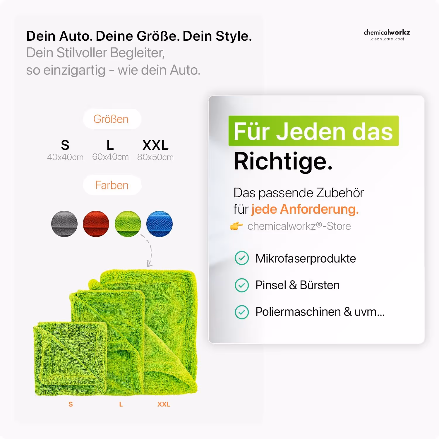 Fazit aus Verbrauchersicht: Für Anwender, die besonderen Wert auf eine schnelle, lackschonende Trocknung legen, erweist sich das chemicalworkz Shark Twisted Loop Trockentuch als äußerst leistungsfähige Lösung. Auf versiegelten Lacken ermöglicht es eine besonders komfortable, nahezu mühelose Trocknung, auf unversiegelten Oberflächen überzeugt es durch seine enorme Saugkraft – bei akzeptablem Mehrgewicht durch das aufgenommene Wasser. In Kombination mit der hohen Verarbeitungsqualität und der guten Pflegeeigenschaften ist das Tuch aus Verbrauchersicht sowohl für ambitionierte Privatnutzer als auch für den häufigen Einsatz eine sehr empfehlenswerte Wahl.