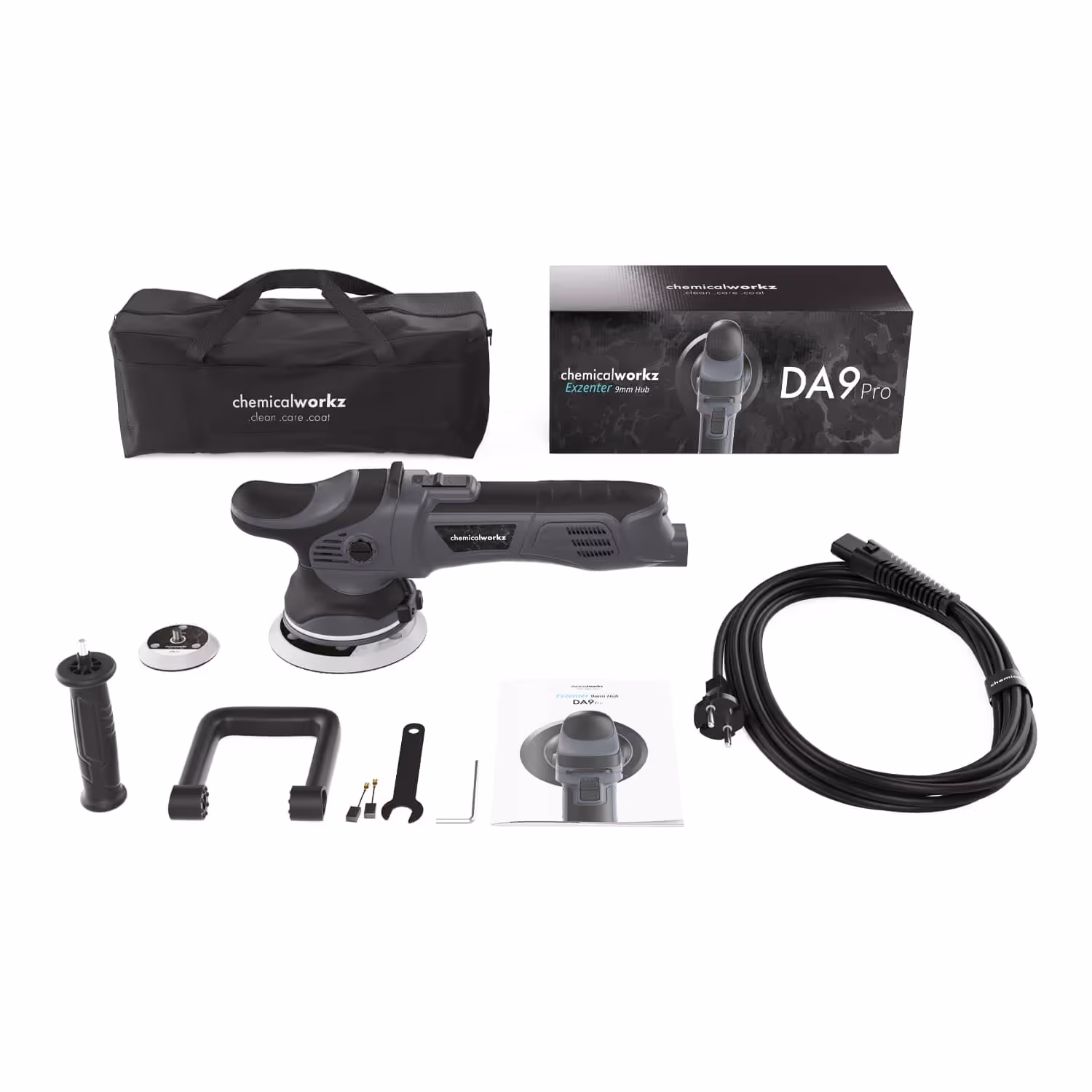 Im Rahmen einer detaillierten und praxisnahen Untersuchung wurde die Leistungsfähigkeit der chemicalworkz DA9 Pro Exzenter-Poliermaschine getestet. Ziel dieses Tests war es, die Handhabung, Ergonomie, Kraftübertragung und Stabilität der Maschine unter realistischen Einsatzbedingungen zu überprüfen. Die Tests umfassten verschiedene Anwendungsszenarien, darunter die Bearbeitung kleiner und großer Flächen, die Handhabung von Polierpad-Wechseln sowie die Prüfung der Dauerbelastung hinsichtlich Wärmeentwicklung, Vibrationsverhalten und Lautstärke. Die Umgebungstemperatur während des Tests lag konstant bei 16°C. Als Testfahrzeug diente ein PKW der Fahrzeugklasse D (Mittelklasse) mit typischen Gebrauchsspuren in Form von leichten Kratzern bis mittleren Swirls auf der Lackoberfläche. Die Maschine wurde mit den werkseitig mitgelieferten Stütztellern in den Größen 75mm und 125mm sowie mit einer Medium Cut Politur verwendet. Bereits beim Auspacken hinterließ die Maschine einen hochwertigen Eindruck. Verarbeitungsmängel waren nicht feststellbar. Sämtliche Komponenten waren sicher und übersichtlich verpackt. Der Erstkontakt mit dem Gerät verlief äußerst positiv. Ohne vorherige Nutzungserfahrung ließ sich die Poliermaschine intuitiv bedienen. Alle Bedienelemente waren logisch angeordnet, klar beschriftet und ermöglichten eine sofortige Inbetriebnahme, ohne dass eine Konsultation der Anleitung erforderlich war.