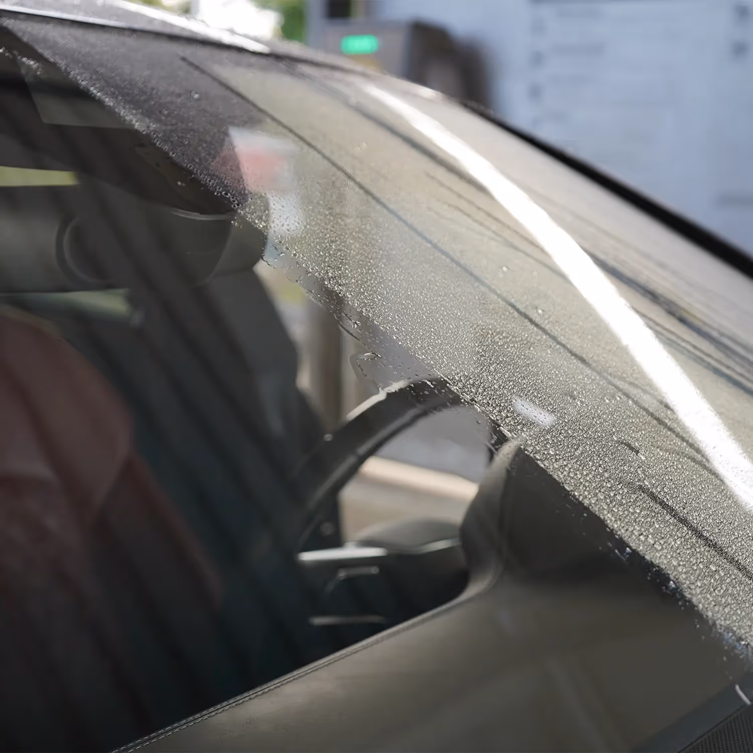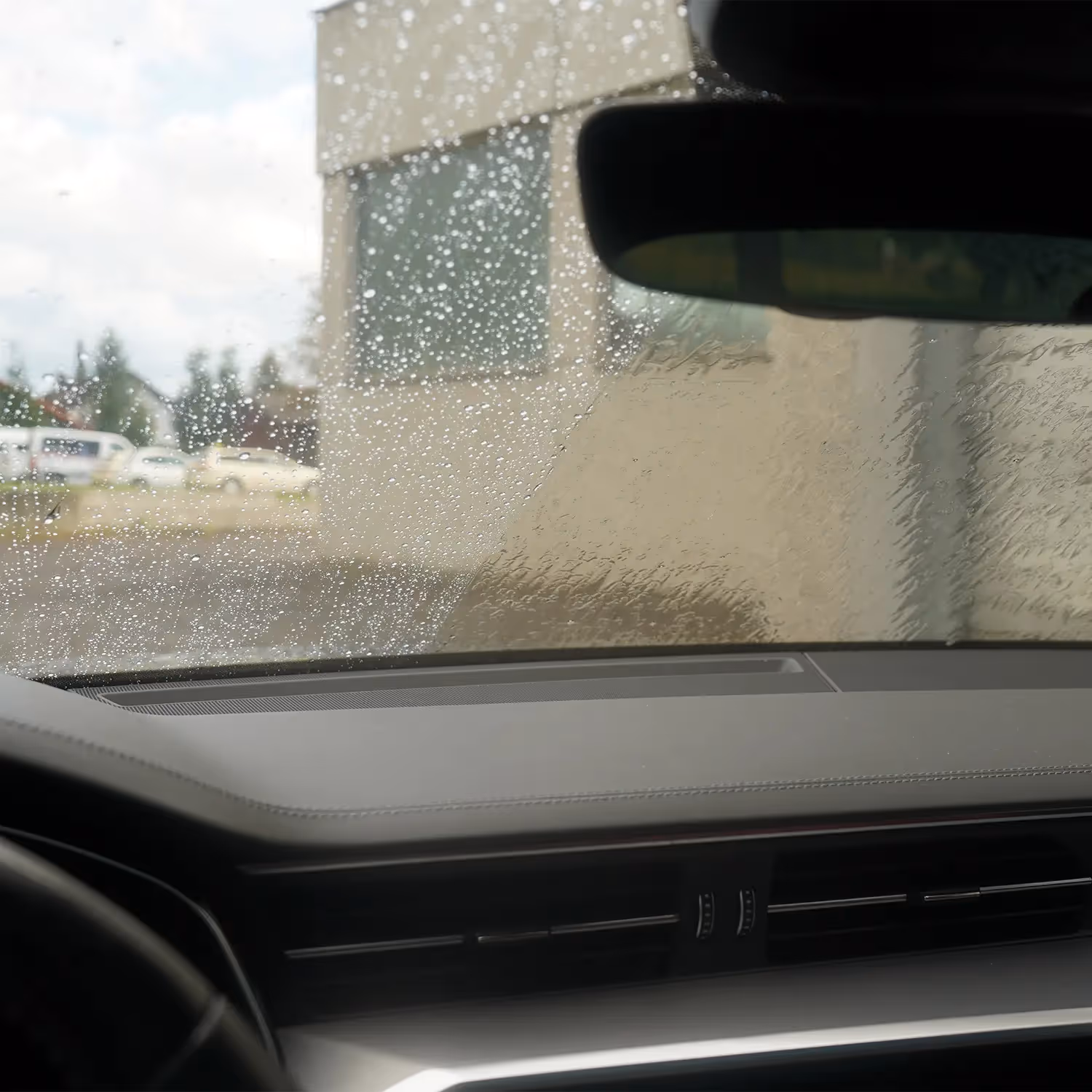 The manufacturer promotes its Glaco Roll On glass sealant as an “invisible wiper” from around 45–60 km/h, with significantly improved visibility. Independently of the formal test objective, we assess whether wiper use is practically eliminated and whether visibility in everyday driving actually improves.