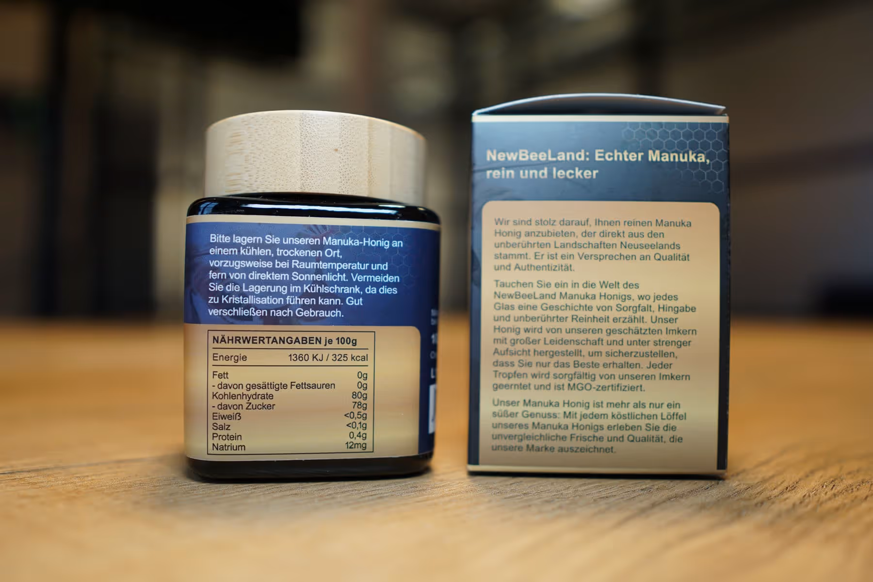 Packaging & first impression: Even when unpacked, the honey gives off a high-quality overall impression. The dark glass looks robust and high-quality, the labeling is clean and easy to read. The bamboo lid underlines the natural appeal of the product and visually creates a high-quality, sustainable appearance. The existing initial opening protection, which is clearly visible before first use and creates trust in the integrity of the product, is also positive.