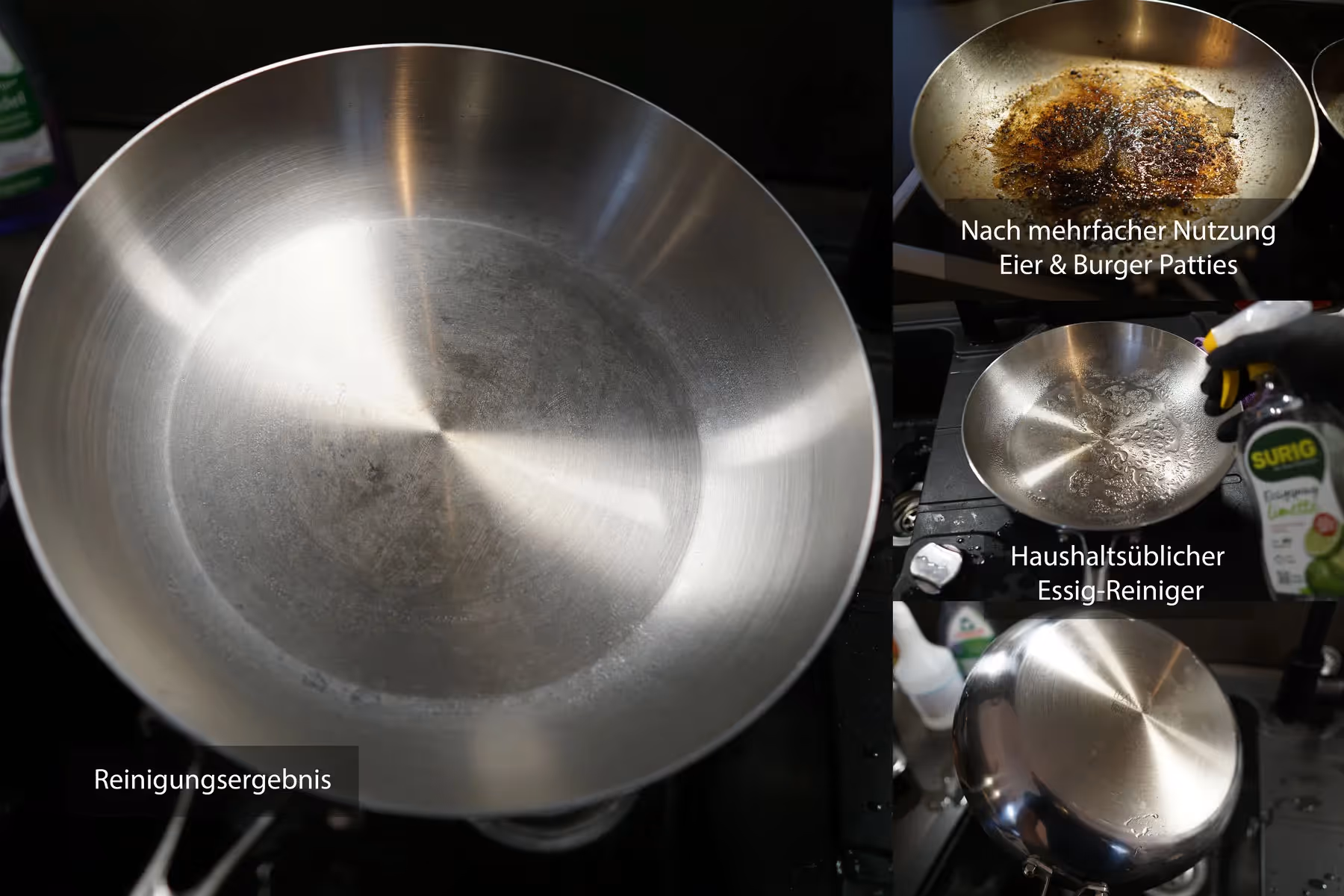 Conclusion from a consumer perspective: A robust stainless steel pan suitable for everyday use with easy to control frying behavior — especially if you stick to the stainless steel basics (preheating, oil film, patience). Cleaning remains consumer-friendly overall, and typical traces of stainless steel are normal and easy to control. Note: To avoid material stress, allow the pan to cool briefly on the switched off plate after frying and only then clean it with water — do not add cold water to the pan that is still hot (risk of thermal shock).