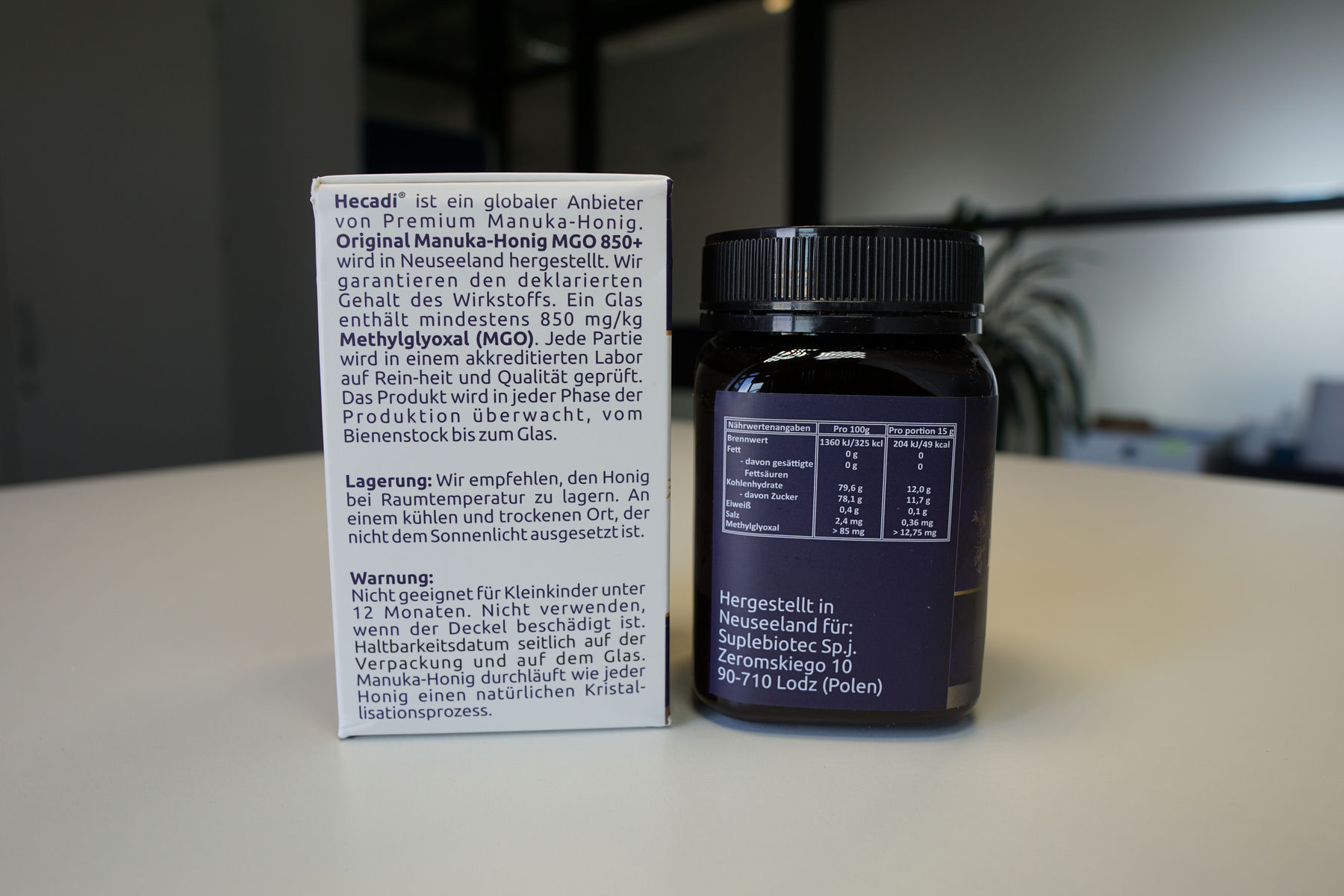 Conclusion from a consumer perspective: Overall, practice-oriented Manuka honey with sturdy packaging, easy removal and a coherent overall sensory image. The multi-stage sealing and the externally verified MGO value also support the traceability of the quality information. Consumer advice: Honey should be used consciously and moderately. For use in hot drinks, it is recommended to stir in the honey only after it has cooled down in order to maintain optimal taste and quality.