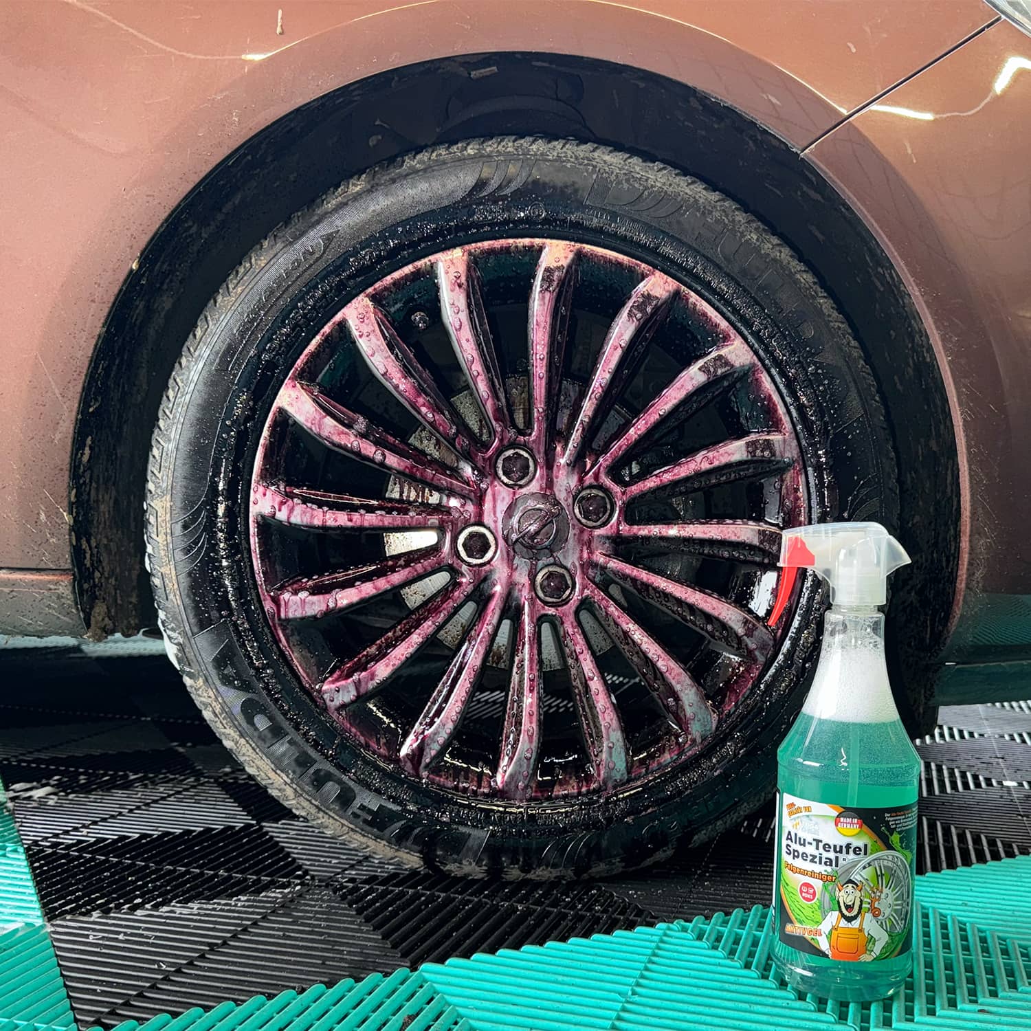 Der Alu-Teufel Spezial Felgenreiniger von TUGA Chemie gilt bei vielen Anwendern als Referenzprodukt für die Felgenreinigung und richtet sich an Verbraucher, die starke Bremsstaubverschmutzungen zuverlässig entfernen möchten, ohne die Felgenoberfläche zu gefährden. Aus Verbrauchersicht steht im Mittelpunkt, ob der Reiniger unter realen Bedingungen in der Waschbox sowohl bei normaler als auch bei hartnäckiger Verschmutzung überzeugt und sich dabei sicher und komfortabel handhaben lässt.