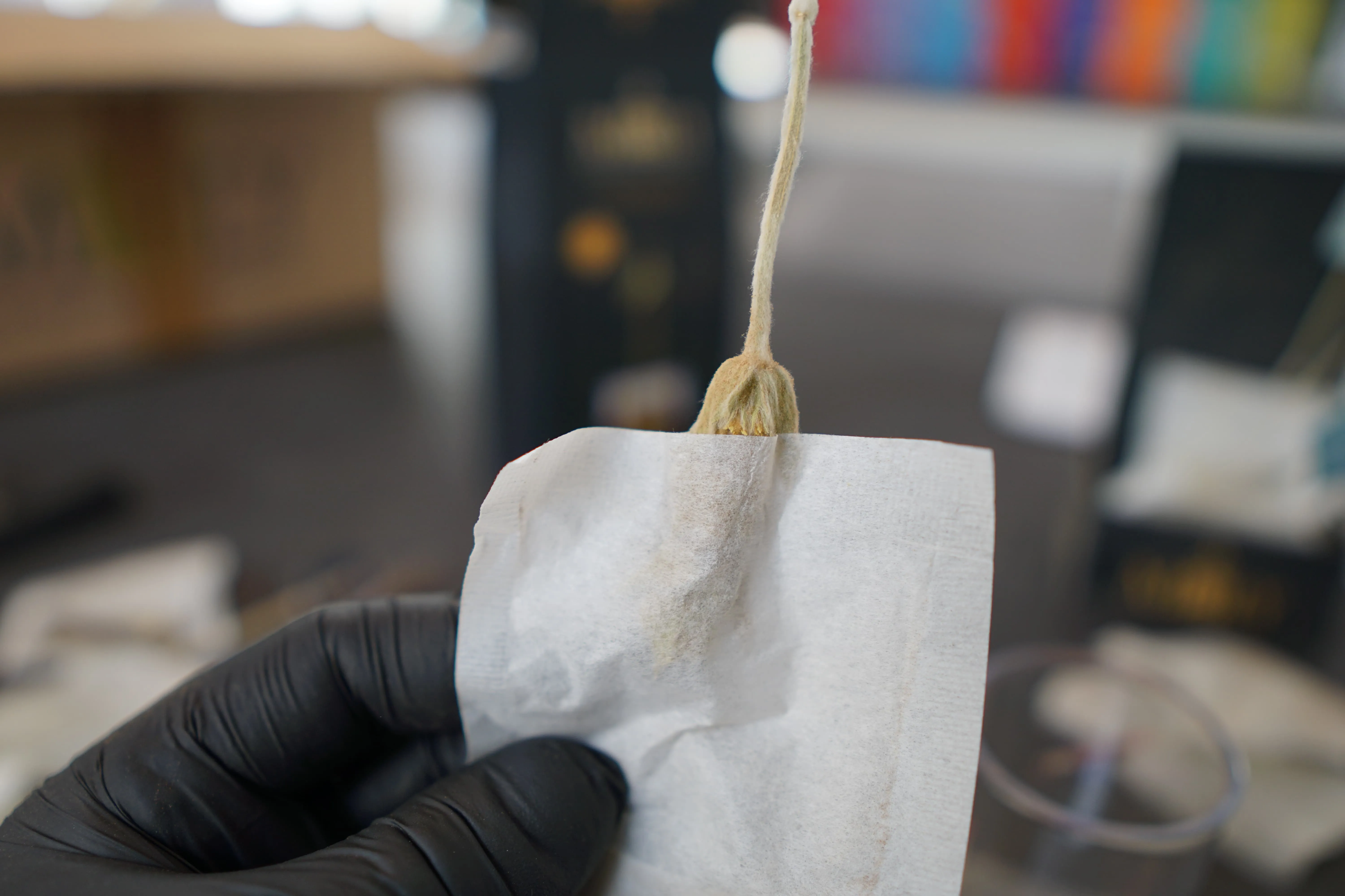 Praxiseindruck (Brühvorgang): Im Vorfeld bestand die Befürchtung, dass der Stiel durch den Kontakt mit heißem Wasser weich werden, an Stabilität verlieren oder frühzeitig brechen könnte. In der Praxis bestätigte sich dies nicht. Selbst nach mehreren Brühvorgängen mit demselben Stick bleibt der Stiel ausreichend steif und funktional. Der Teebeutel ließ sich jederzeit sicher aus der Tasse entnehmen. Auch bei leichter Fehlbelastung zeigte sich das System tolerant: Sollte es zu einer ungünstigen Bewegung kommen, reißt der Beutel in vielen Fällen nicht sofort vollständig ab, sondern bleibt häufig noch teilweise am Stiel hängen und somit weiter nutzbar.
