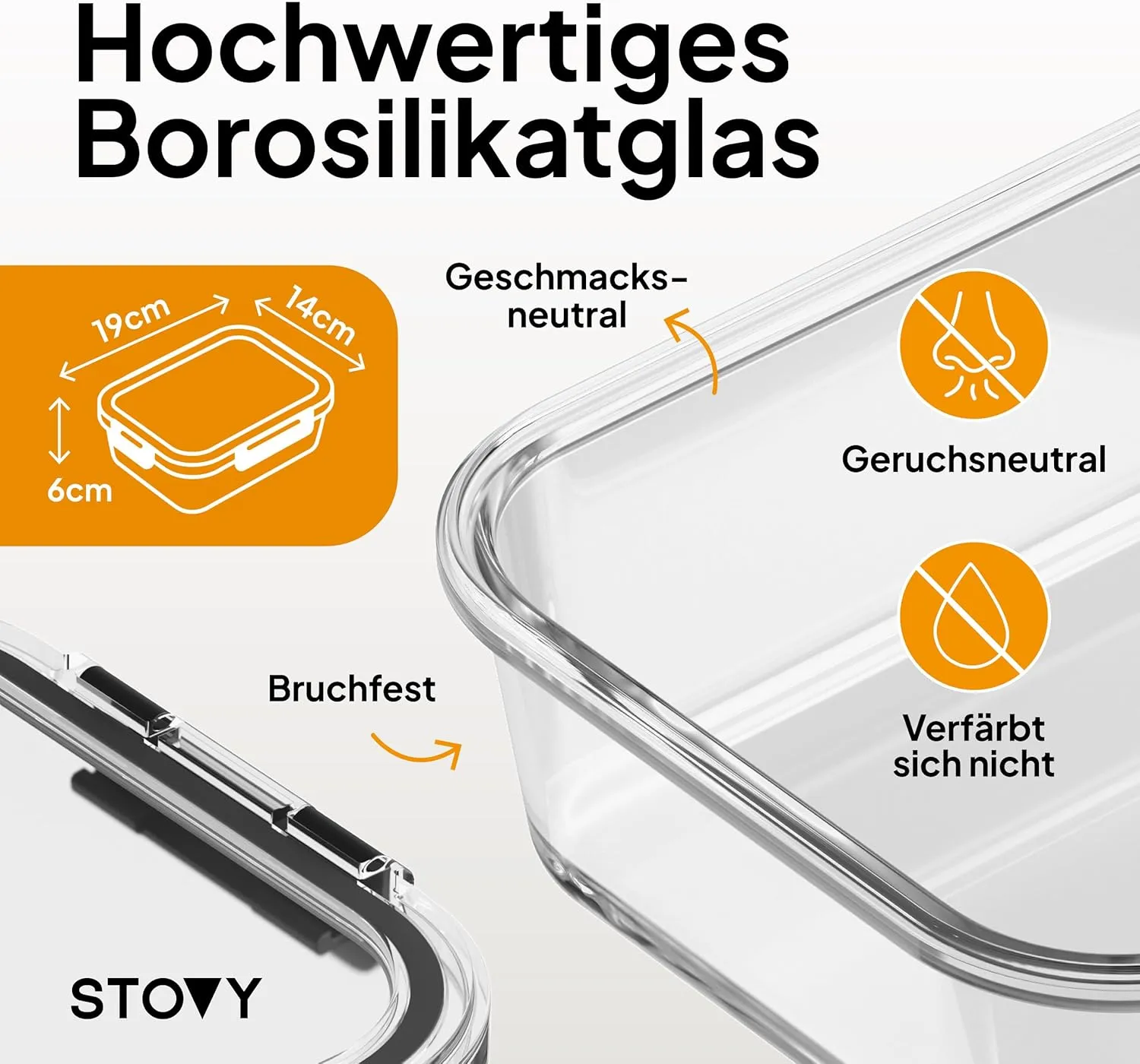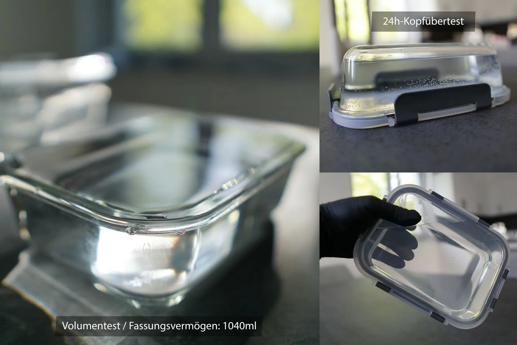 Fazit aus Verbrauchersicht: Die Meal-Prep-Boxen wirken insgesamt hochwertig, dicht, gut durchdacht und praxistauglich. Besonders positiv sind der sichere Verschluss, die einfache Zerlegbarkeit zur Reinigung, die stabile Anmutung des Glases und die alltagstaugliche Portionsgröße. Kleinere Auffälligkeiten wie die anfangs leicht haftende Dichtung ändern am insgesamt sehr positiven Gesamteindruck kaum etwas.