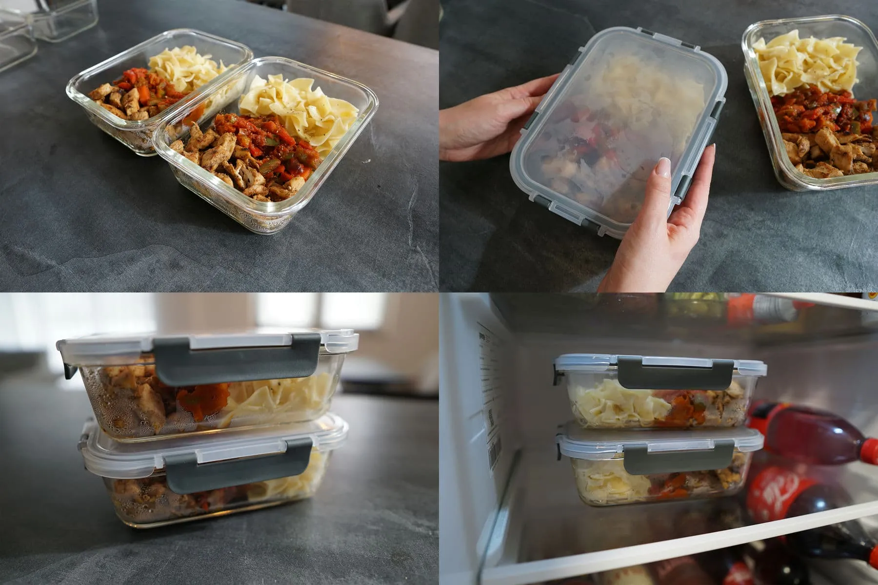 Auch bei Nutzung und Reinigung wirkt das System durchdacht. Die Boxen lassen sich vollständig in ihre Einzelteile zerlegen, was die Reinigung deutlich erleichtert. Die Dichtung klebte beim ersten Auspacken stellenweise leicht am Glas, ließ sich jedoch innerhalb weniger Sekunden wieder korrekt einsetzen und war damit kein echtes Problem im Alltag. Zusätzlich wirkt das Glas stabil und hochwertig. Auch nach zwei Wochen Nutzung mit unterschiedlichen Speisen, darunter fettigere und farbintensive Gerichte bzw. Soßen, zeigten weder der Kunststoffdeckel noch das Glas auffällige Verfärbungen.
